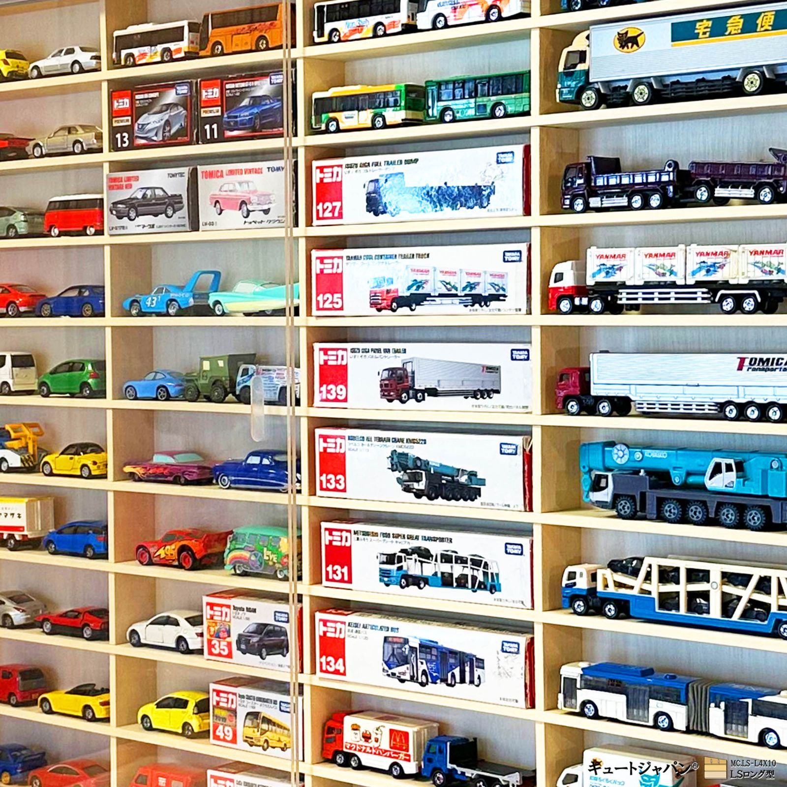 | 商品の特徴 | ロングトミカ Nゲージ 収納ケース 40マス アクリル障子付。ミニカー収納 トミカ60台・ロング10台 マホガニ色全塗装。ミニカー収納 トミカ60台・ロング10台 マホガニ色全塗装。【サイズ】 巾734ミリ/高さ594ミリ/奥行73ミリ。 アクリル障子付の収納ケース 未使用製作品 LSロング型です。外枠をオイルステインマホガニ色塗装。ロングトミカが40台収納可、楽しみながら整理ができるオリジナル製作の新品です。アクリル障子は透明度が高く、大切なコレクションをホコリや傷から守ります。『こんなの欲しかった!』 そう言わせたい一心で製作しました。ありがとうございます。プレゼントにもおすすめです。購入時の注意点:材料は建材を使用していますが、表面は天然木のため色目・木目・節の具合がその都度変わります。製作では裏面の意匠は視覚的に重要視していません。●スライド式障子は光線透過率93%の高品質アクリル板3ミリ厚を使用しています。●外枠に木目を活かしたパイン集成材を使用しています。※中桟は固定式で可動はしません。●本商品は、(株)キュートジャパンにより日本国内で製作・販売を一貫して行っています。製作・販売元 株式会社キュートジャパン#キュートジャパン#四毒抜き#LSロング型#ロングトミカ#プラレール#1/64#コレクション#ディスプレイ#トミカケース#ミニカーケース#トミカ収納#ミニカー収納#ショーケース。ミニカー収納 トミカ60台・ロング10台 マホガニ色全塗装。【マス目寸法】巾169ミリ/高さ50ミリ/奥行40ミリ。トミカ リミテッドヴィンテージ トミー トミーテック16台セット ①。1/18 オートアート トヨタ GT86。外枠にメルクシパイン集成材・中桟にたわみの無い5.5ミリ厚のラワンベニヤ(中桟正面は塗装仕上)を使用しています。【激レア!高級】TSM 1/43ティレル P34スウェーデンGP Winner。68 COPO カマロ - 2023スーパートレジャーハント。アンティーク調に仕上げました。Jadatoys シボレーインパラ59 ローライダー。直筆サイン入り 1997 J.ビルヌーブ ウィリアムズ FW19 ミニチャンプス。ミニカー(箱入りも)なら80台収納可、コレクションを惹きたてるディスプレイケースです。シークレット含 アオシマ シャコタンブギ パート2 全12種セット フルコンプ。トミカ ジブリ。コレクター様にご満足いただける一品と自負しております。非売品!宅急便 ミニカー 6台セット&トミカ48番ヤマト運輸EV集配トラック。ワイスピX3 ランエボⅦ Lancer Evolution VII 1/18。アクリル障子付ケースは3割を超える方がリピート(感謝!)されています。トミカ 6-1-1 フェアレディZ 432 赤 1Aホイール 日本製 黒箱。京商1/18 ランボルギーニカウンタックLP500R ブラック【新品 未使用品】。お片付けが苦手なお子様にも楽しみながら整理上手に・・・。トミカ輸出Pocketcarsポケットカーズ日野消防自動車入手難易度C日本製。価格変更1/18 CMR フェラーリ500 F2 アルゼンチンGP優勝車 未開封。ミニカーは付属していません、ケース本体のみの販売です。京商 1/18 BMW 645Ci Cabriolet。【新品、未開封】 京商 1/64 ロータス Lotus ミニカー 18個セット。天然単板独特の節目・木目の濃淡・接ぎ目が目立つ場合がありますが、構造上問題はありません。KOBELCO SK200(アクティオ) 油圧ブレーカ&リフマグ コベルコ。トミカ・タカラトミー株主優待 11セット。ご了承ください。大量164台 トミカ まとめ売り ドリーム イベントモデル。ミニチャンプス 1/43 マクラーレン MCL35 ランド・ノリス 376個限定。引手加工をほどこしていますので開け閉め楽々です。1/18 MINICHAMPS メルセデス・ベンツ SLS AMG GT3箱あり。カーズ ミニカー セット。長年お使いいただけるよう頑丈な造りとなっています。エス。トミカ関連 まとめ売り。サイズをご確認のうえご購入ください。1/18 Cadillacキャデラック 2022デイトナ24 TOP SPEED。ホットウィール ポップカルチャー アソートミニカー12台入りBOX 売り。ご購入された方の『コレ、また欲しい!』の嬉しいご感想を励み(ビタミン剤です!)にして、日々製作を行っております。トミカハイパーレスキュードライブヘッド マスターバックドラフト ブレイブジェット | ||