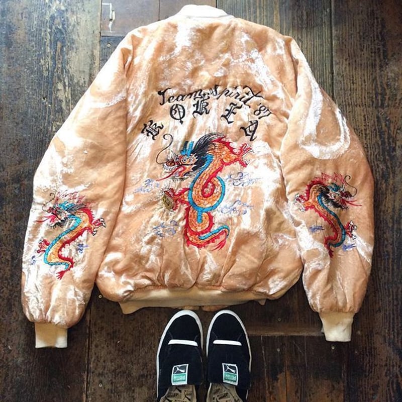 - メンズ > ジャケット・アウター > USED OLD ベロアスカジャン 肌色ピンク 龍 古着 vintage USED] OLD ベロアスカジャン 肌色ピンク! | garden730